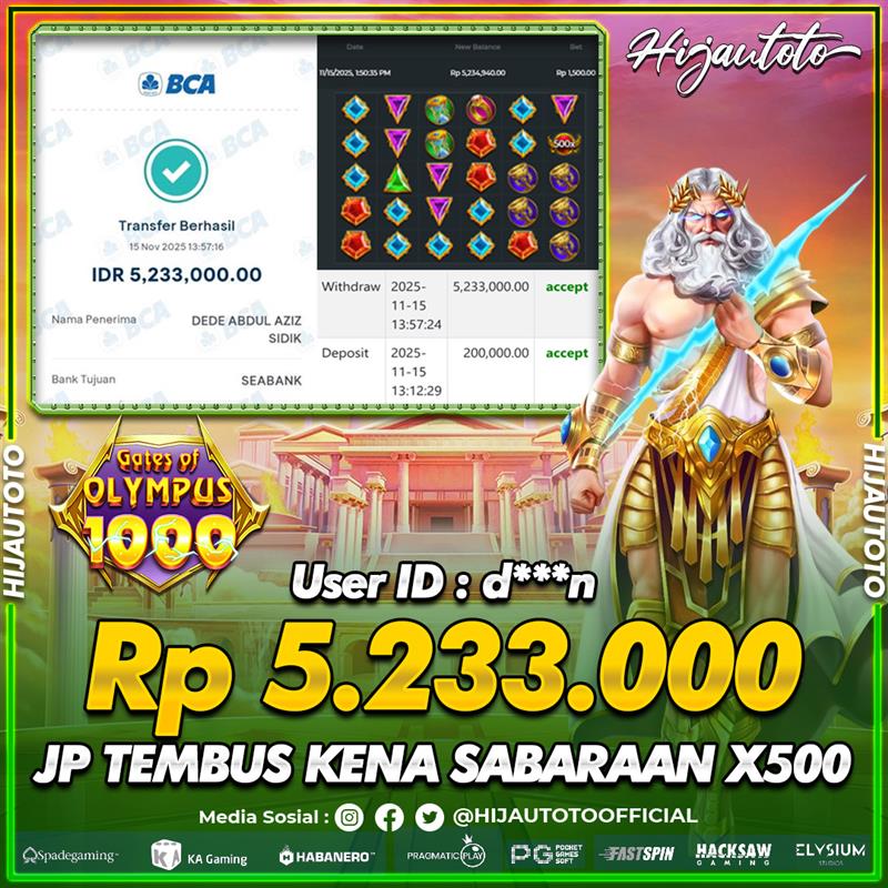 Selamat datang di HIJAUTOTO, tempatnya seru-seruan dan cuan besar! Mulai main cukup dengan modal Rp5.000 aja, taruhan super murah dari Rp100 perak! Mau main slot yang penuh warna? Atau togel dari 20 pasaran paling hits? Atau mungkin tembak ikan yang bikin deg-degan? Tenang, ada juga taruhan bola, sabung ayam, dan live casino yang bikin suasana makin hidup! Daftar sekarang dan dapetin bonus new member 100% langsung, biar modalmu makin tebal. Deposit gampang banget, bisa pakai QRIS, dan kalau butuh bantuan, customer service kita siap 24 jam nonstop. Jadi, tunggu apa lagi? Yuk, gabung dan bawa pulang kemenangannya cuma di HIJAUTOTO!