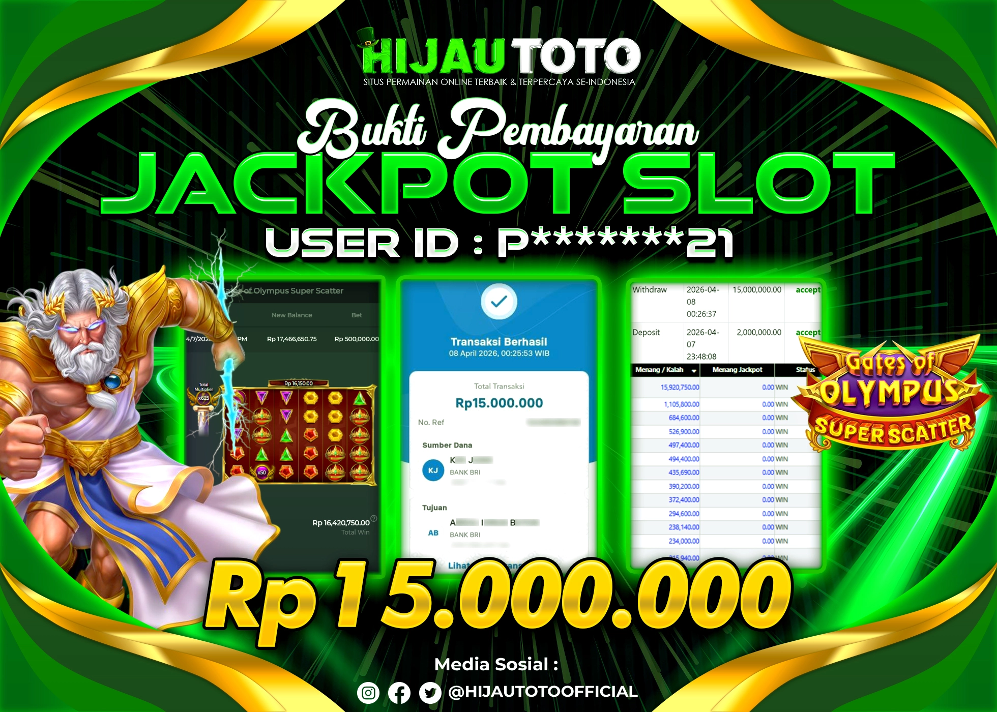 Selamat datang di HIJAUTOTO, tempatnya seru-seruan dan cuan besar! Mulai main cukup dengan modal Rp5.000 aja, taruhan super murah dari Rp100 perak! Mau main slot yang penuh warna? Atau togel dari 20 pasaran paling hits? Atau mungkin tembak ikan yang bikin deg-degan? Tenang, ada juga taruhan bola, sabung ayam, dan live casino yang bikin suasana makin hidup! Daftar sekarang dan dapetin bonus new member 100% langsung, biar modalmu makin tebal. Deposit gampang banget, bisa pakai QRIS, dan kalau butuh bantuan, customer service kita siap 24 jam nonstop. Jadi, tunggu apa lagi? Yuk, gabung dan bawa pulang kemenangannya cuma di HIJAUTOTO!