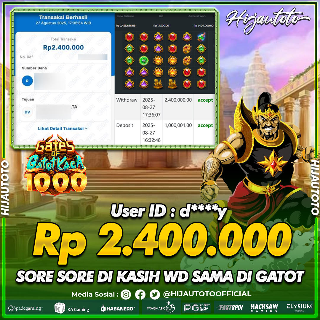 Selamat datang di HIJAUTOTO, tempatnya seru-seruan dan cuan besar! Mulai main cukup dengan modal Rp5.000 aja, taruhan super murah dari Rp100 perak! Mau main slot yang penuh warna? Atau togel dari 20 pasaran paling hits? Atau mungkin tembak ikan yang bikin deg-degan? Tenang, ada juga taruhan bola, sabung ayam, dan live casino yang bikin suasana makin hidup! Daftar sekarang dan dapetin bonus new member 100% langsung, biar modalmu makin tebal. Deposit gampang banget, bisa pakai QRIS, dan kalau butuh bantuan, customer service kita siap 24 jam nonstop. Jadi, tunggu apa lagi? Yuk, gabung dan bawa pulang kemenangannya cuma di HIJAUTOTO!