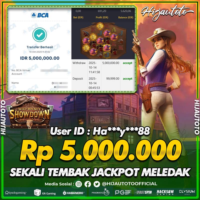 Selamat Kepada Member HIJAUTOTO HA*******88 Telah Jackpot Di SLOT WILD BOUNTY SHOWDOWN