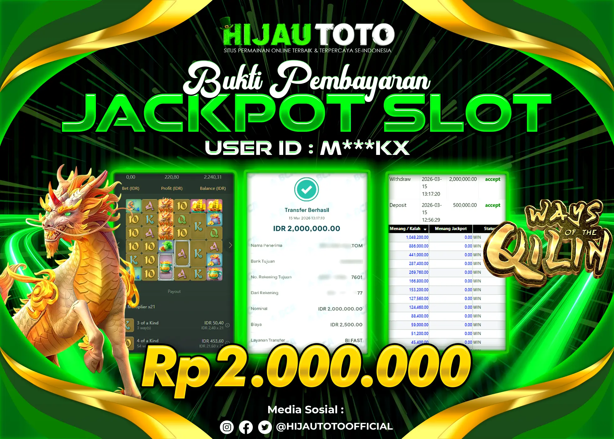 Bergabung dengan HIJAUTOTO sangat mudah dan cepat. Cukup lakukan pendaftaran dengan data lengkap, lakukan deposit minimal Rp5.000 melalui berbagai metode termasuk QRIS, dan mulai bertaruh dengan minimal taruhan Rp100. Dapatkan juga bonus new member 100% untuk modal bermain lebih besar.