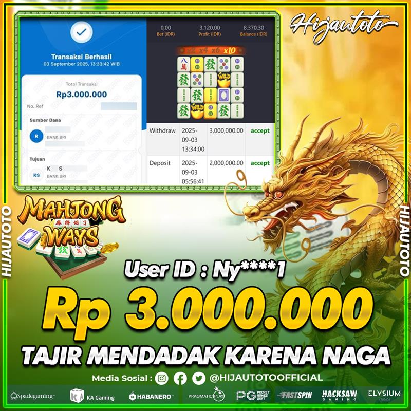 Karena berhasil memenangkan Rp.Rp.5.000.000 dari permainan seru SLOT MAHJONG WAYS di HIJAUTOTO! πŸ’°πŸ’Έ