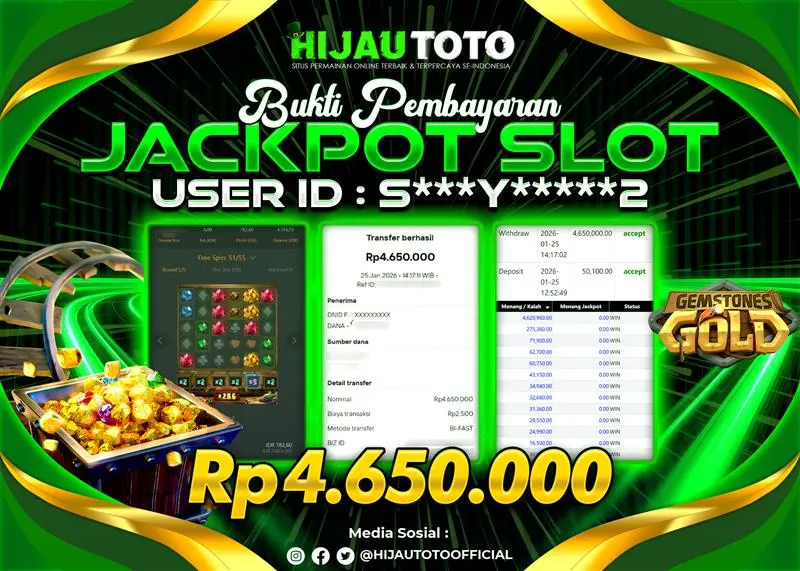 Selamat Kepada Member HIJAUTOTO S***Y*****2 Telah Jackpot Di SLOT GEMSTONES GOLD