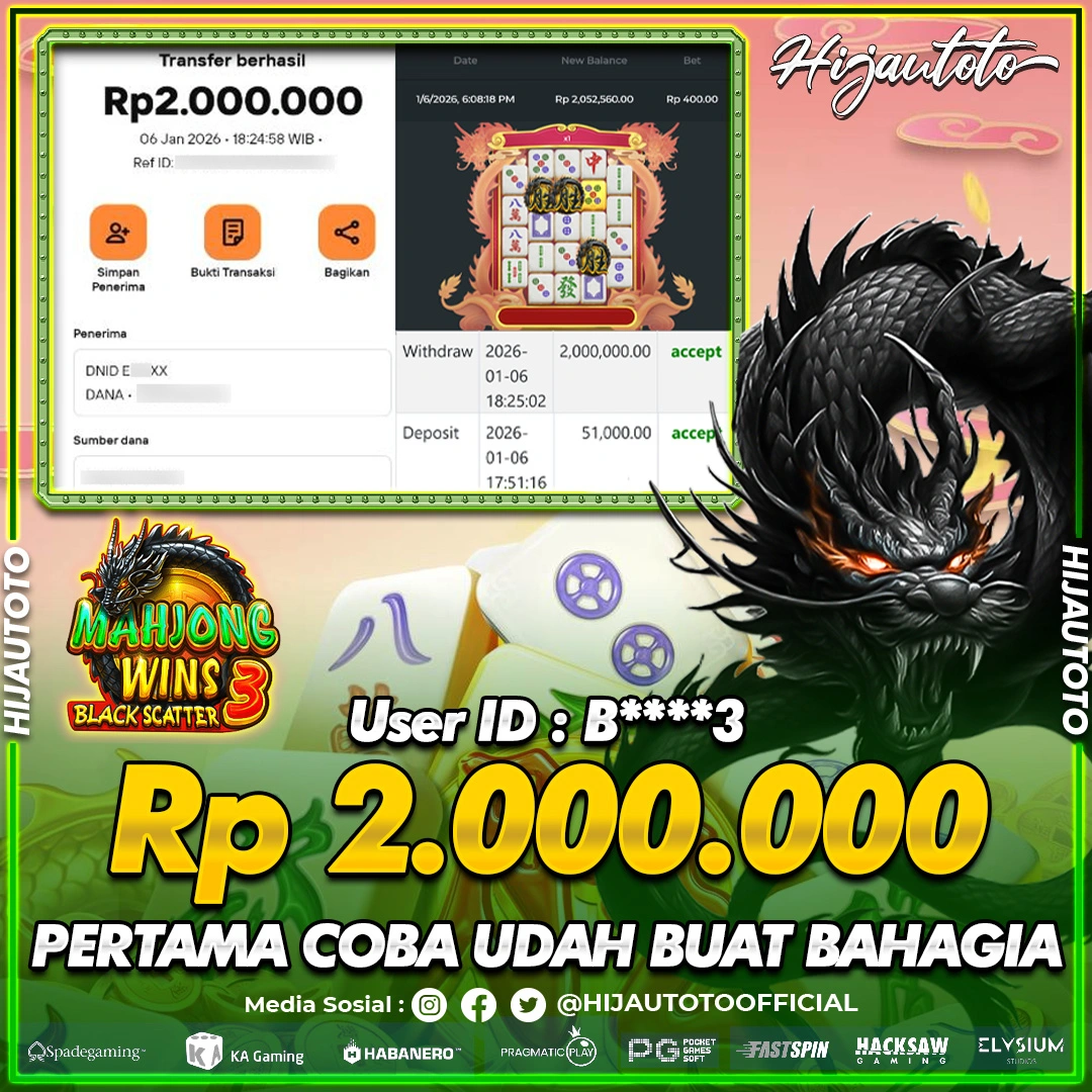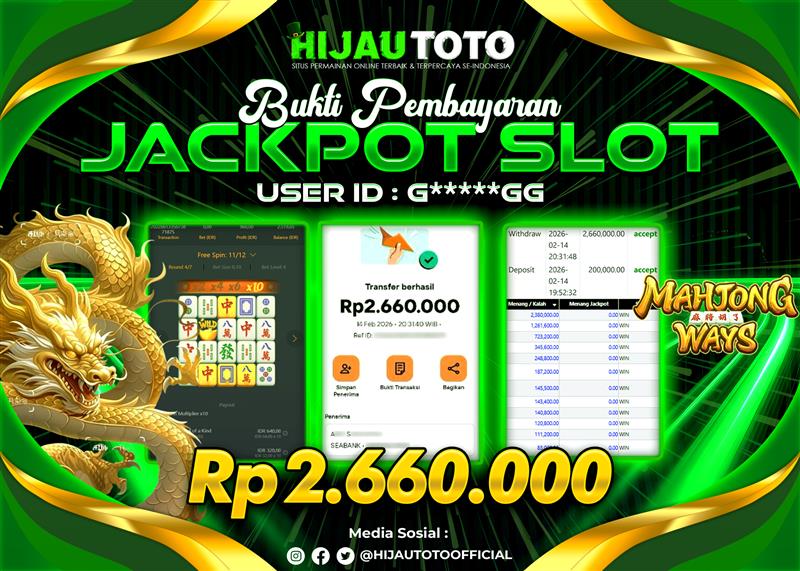 Selamat datang di HIJAUTOTO, tempatnya seru-seruan dan cuan besar! Mulai main cukup dengan modal Rp5.000 aja, taruhan super murah dari Rp100 perak! Mau main slot yang penuh warna? Atau togel dari 20 pasaran paling hits? Atau mungkin tembak ikan yang bikin deg-degan? Tenang, ada juga taruhan bola, sabung ayam, dan live casino yang bikin suasana makin hidup! Daftar sekarang dan dapetin bonus new member 100% langsung, biar modalmu makin tebal. Deposit gampang banget, bisa pakai QRIS, dan kalau butuh bantuan, customer service kita siap 24 jam nonstop. Jadi, tunggu apa lagi? Yuk, gabung dan bawa pulang kemenangannya cuma di HIJAUTOTO!