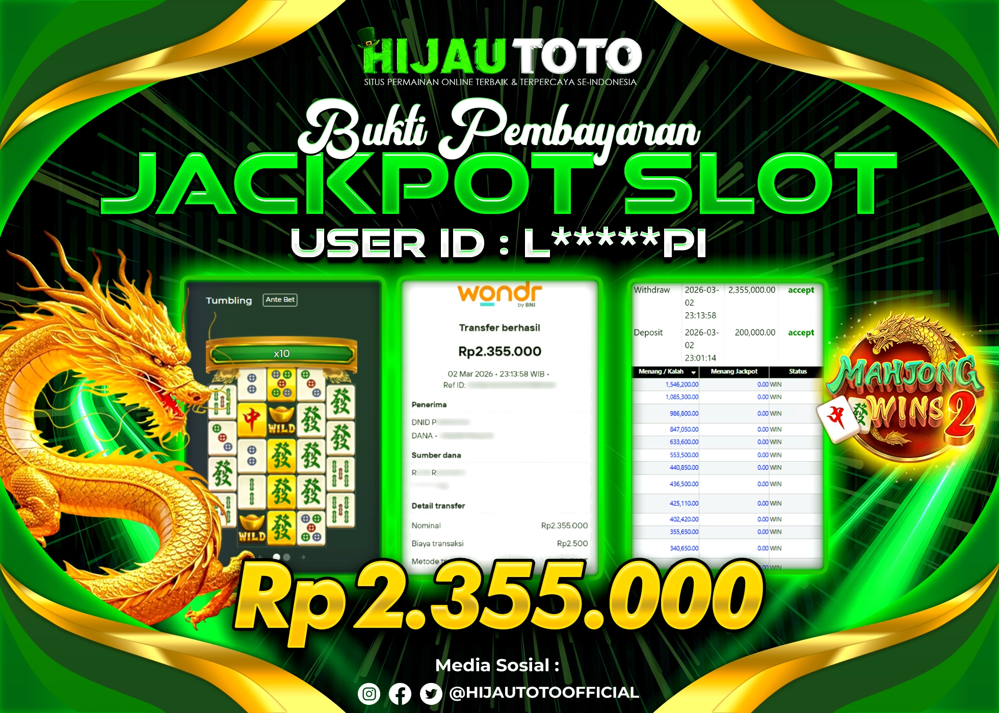 HIJAUTOTO adalah pilihan terbaik bagi Anda yang mencari platform judi online terpercaya dengan modal terjangkau, ragam permainan lengkap, bonus menguntungkan, dan layanan profesional 24 jam. Semua kebutuhan hiburan dan keuntungan Anda terpenuhi dalam satu tempat.