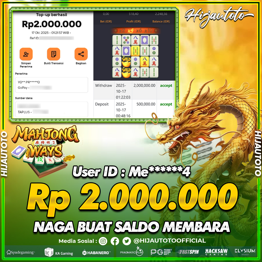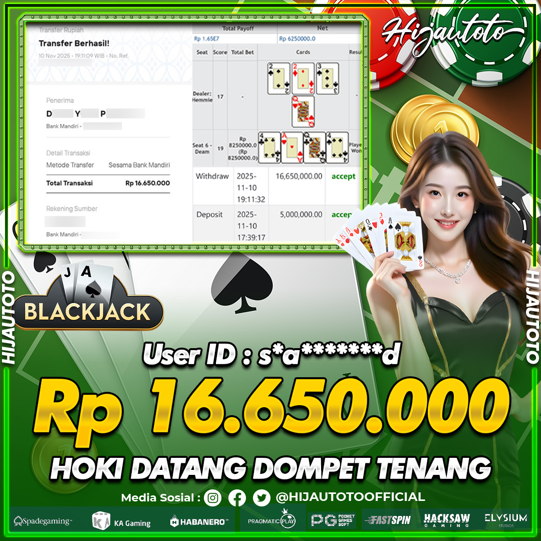Selamat datang di HIJAUTOTO, tempatnya seru-seruan dan cuan besar! Mulai main cukup dengan modal Rp5.000 aja, taruhan super murah dari Rp100 perak! Mau main slot yang penuh warna? Atau togel dari 20 pasaran paling hits? Atau mungkin tembak ikan yang bikin deg-degan? Tenang, ada juga taruhan bola, sabung ayam, dan live casino yang bikin suasana makin hidup! Daftar sekarang dan dapetin bonus new member 100% langsung, biar modalmu makin tebal. Deposit gampang banget, bisa pakai QRIS, dan kalau butuh bantuan, customer service kita siap 24 jam nonstop. Jadi, tunggu apa lagi? Yuk, gabung dan bawa pulang kemenangannya cuma di HIJAUTOTO!