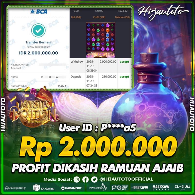 β¨ JACKPOT DI SLOT MYSTIC POTION β¨