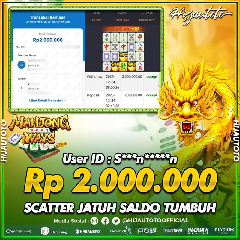 Selamat datang di HIJAUTOTO, tempatnya seru-seruan dan cuan besar! Mulai main cukup dengan modal Rp5.000 aja, taruhan super murah dari Rp100 perak! Mau main slot yang penuh warna? Atau togel dari 20 pasaran paling hits? Atau mungkin tembak ikan yang bikin deg-degan? Tenang, ada juga taruhan bola, sabung ayam, dan live casino yang bikin suasana makin hidup! Daftar sekarang dan dapetin bonus new member 100% langsung, biar modalmu makin tebal. Deposit gampang banget, bisa pakai QRIS, dan kalau butuh bantuan, customer service kita siap 24 jam nonstop. Jadi, tunggu apa lagi? Yuk, gabung dan bawa pulang kemenangannya cuma di HIJAUTOTO!