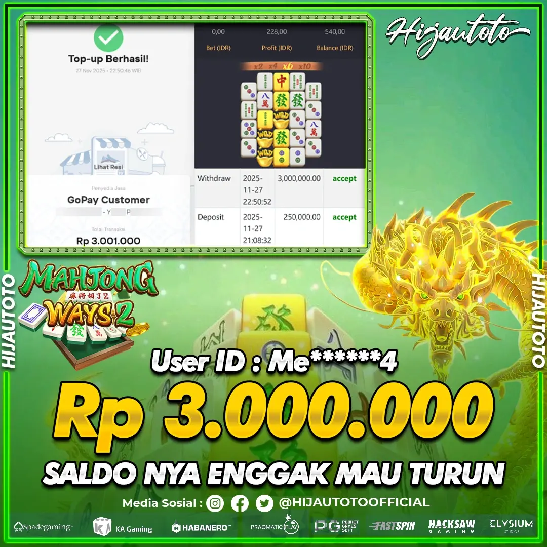 Selamat datang di HIJAUTOTO, tempatnya seru-seruan dan cuan besar! Mulai main cukup dengan modal Rp5.000 aja, taruhan super murah dari Rp100 perak! Mau main slot yang penuh warna? Atau togel dari 20 pasaran paling hits? Atau mungkin tembak ikan yang bikin deg-degan? Tenang, ada juga taruhan bola, sabung ayam, dan live casino yang bikin suasana makin hidup! Daftar sekarang dan dapetin bonus new member 100% langsung, biar modalmu makin tebal. Deposit gampang banget, bisa pakai QRIS, dan kalau butuh bantuan, customer service kita siap 24 jam nonstop. Jadi, tunggu apa lagi? Yuk, gabung dan bawa pulang kemenangannya cuma di HIJAUTOTO!