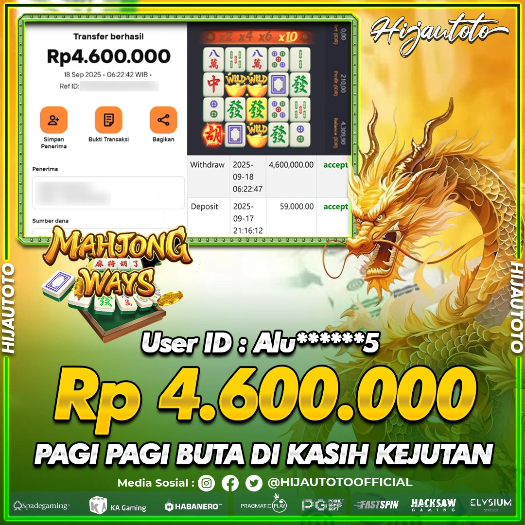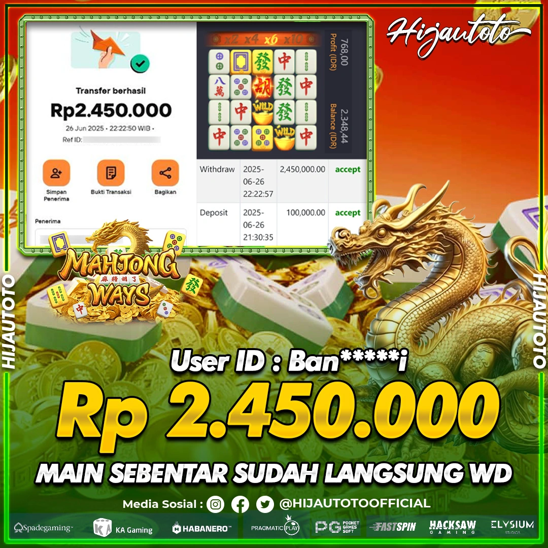 Selamat datang di HIJAUTOTO, tempatnya seru-seruan dan cuan besar! Mulai main cukup dengan modal Rp5.000 aja, taruhan super murah dari Rp100 perak! Mau main slot yang penuh warna? Atau togel dari 20 pasaran paling hits? Atau mungkin tembak ikan yang bikin deg-degan? Tenang, ada juga taruhan bola, sabung ayam, dan live casino yang bikin suasana makin hidup! Daftar sekarang dan dapetin bonus new member 100% langsung, biar modalmu makin tebal. Deposit gampang banget, bisa pakai QRIS, dan kalau butuh bantuan, customer service kita siap 24 jam nonstop. Jadi, tunggu apa lagi? Yuk, gabung dan bawa pulang kemenangannya cuma di HIJAUTOTO!