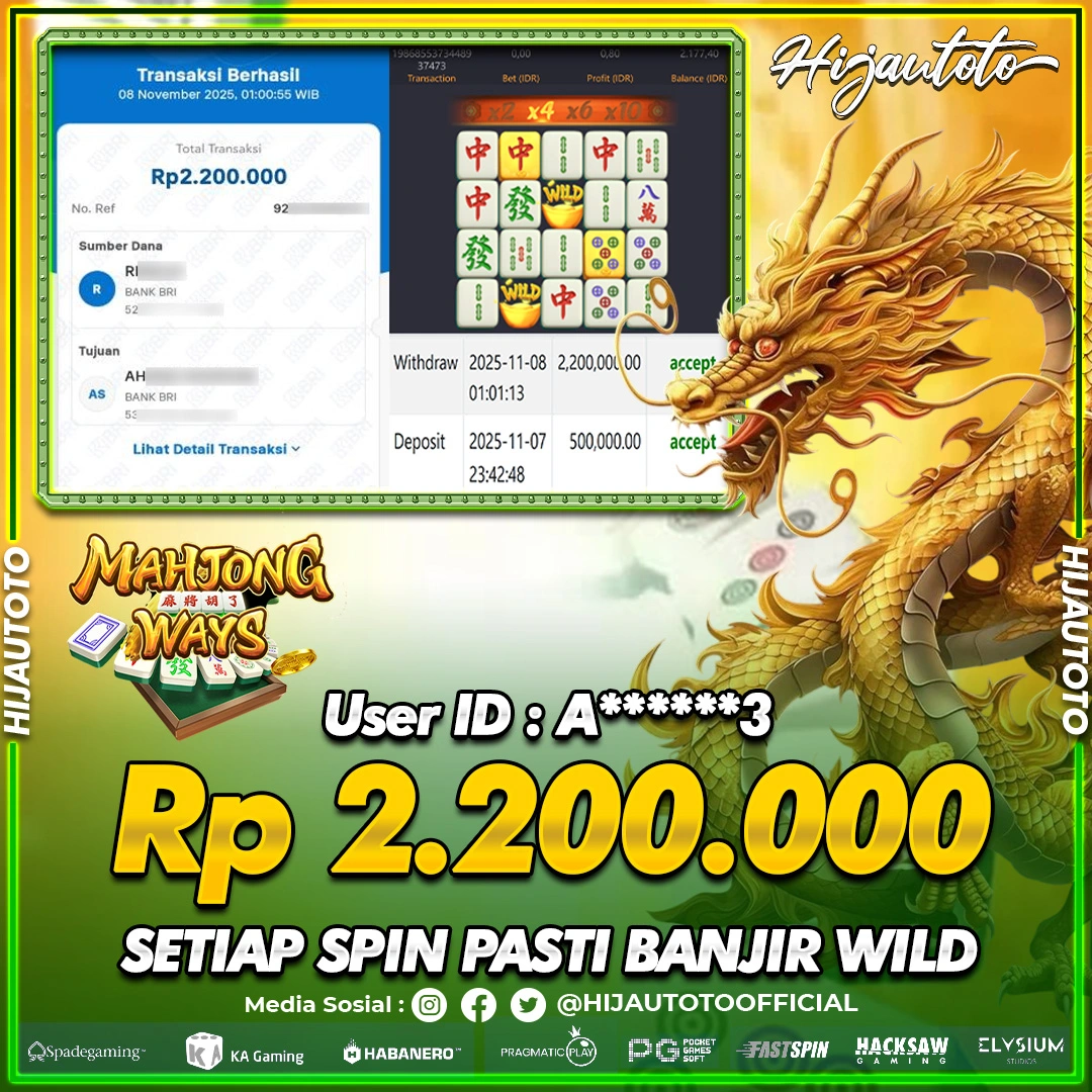 Selamat Kepada Member HIJAUTOTO T*****O Telah Jackpot Di SLOT MAHJONG WAYS