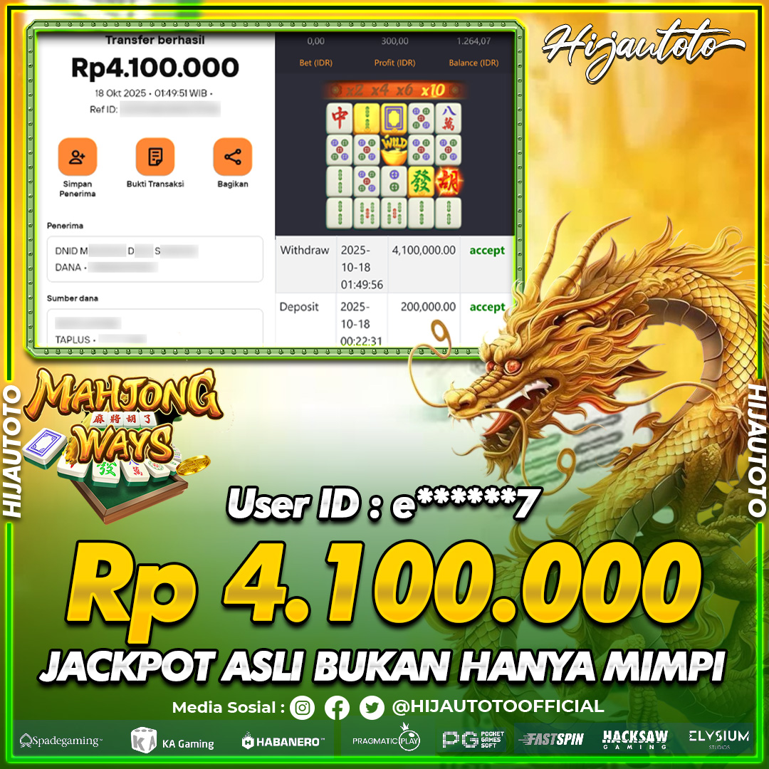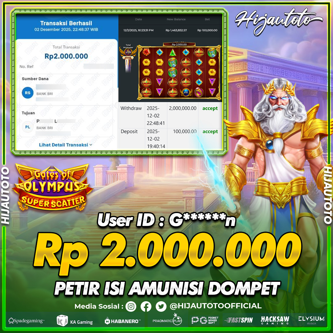 Selamat datang di HIJAUTOTO, tempatnya seru-seruan dan cuan besar! Mulai main cukup dengan modal Rp5.000 aja, taruhan super murah dari Rp100 perak! Mau main slot yang penuh warna? Atau togel dari 20 pasaran paling hits? Atau mungkin tembak ikan yang bikin deg-degan? Tenang, ada juga taruhan bola, sabung ayam, dan live casino yang bikin suasana makin hidup! Daftar sekarang dan dapetin bonus new member 100% langsung, biar modalmu makin tebal. Deposit gampang banget, bisa pakai QRIS, dan kalau butuh bantuan, customer service kita siap 24 jam nonstop. Jadi, tunggu apa lagi? Yuk, gabung dan bawa pulang kemenangannya cuma di HIJAUTOTO!