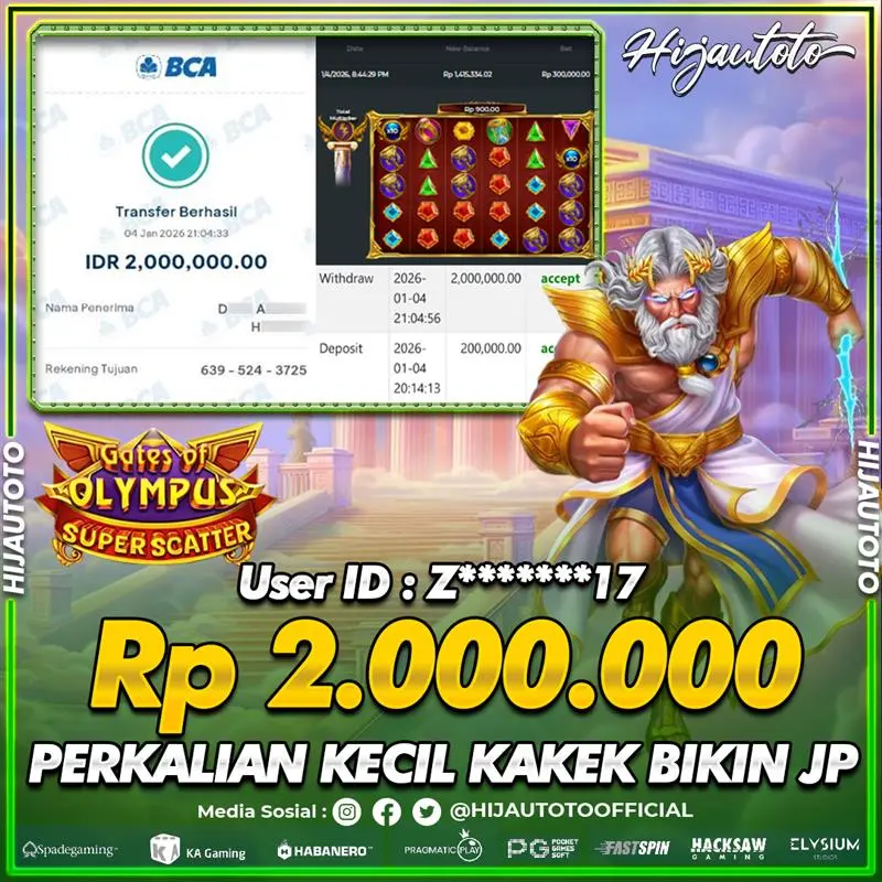 Selamat datang di HIJAUTOTO, tempatnya seru-seruan dan cuan besar! Mulai main cukup dengan modal Rp5.000 aja, taruhan super murah dari Rp100 perak! Mau main slot yang penuh warna? Atau togel dari 20 pasaran paling hits? Atau mungkin tembak ikan yang bikin deg-degan? Tenang, ada juga taruhan bola, sabung ayam, dan live casino yang bikin suasana makin hidup! Daftar sekarang dan dapetin bonus new member 100% langsung, biar modalmu makin tebal. Deposit gampang banget, bisa pakai QRIS, dan kalau butuh bantuan, customer service kita siap 24 jam nonstop. Jadi, tunggu apa lagi? Yuk, gabung dan bawa pulang kemenangannya cuma di HIJAUTOTO!