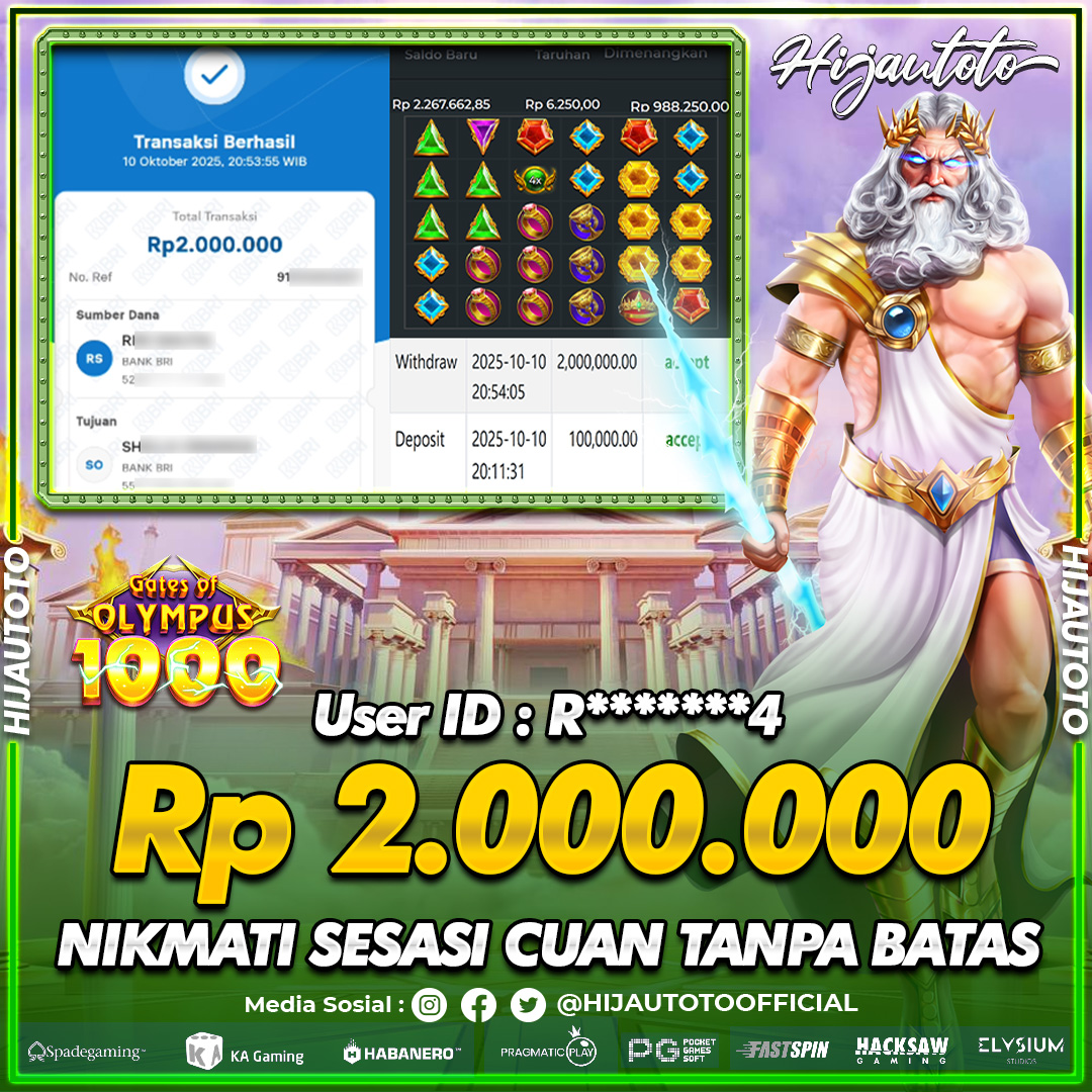 Selamat datang di HIJAUTOTO, tempatnya seru-seruan dan cuan besar! Mulai main cukup dengan modal Rp5.000 aja, taruhan super murah dari Rp100 perak! Mau main slot yang penuh warna? Atau togel dari 20 pasaran paling hits? Atau mungkin tembak ikan yang bikin deg-degan? Tenang, ada juga taruhan bola, sabung ayam, dan live casino yang bikin suasana makin hidup! Daftar sekarang dan dapetin bonus new member 100% langsung, biar modalmu makin tebal. Deposit gampang banget, bisa pakai QRIS, dan kalau butuh bantuan, customer service kita siap 24 jam nonstop. Jadi, tunggu apa lagi? Yuk, gabung dan bawa pulang kemenangannya cuma di HIJAUTOTO!