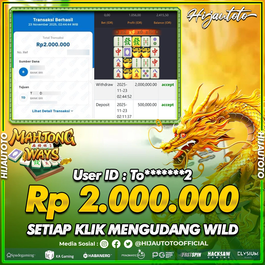 Selamat datang di HIJAUTOTO, tempatnya seru-seruan dan cuan besar! Mulai main cukup dengan modal Rp5.000 aja, taruhan super murah dari Rp100 perak! Mau main slot yang penuh warna? Atau togel dari 20 pasaran paling hits? Atau mungkin tembak ikan yang bikin deg-degan? Tenang, ada juga taruhan bola, sabung ayam, dan live casino yang bikin suasana makin hidup! Daftar sekarang dan dapetin bonus new member 100% langsung, biar modalmu makin tebal. Deposit gampang banget, bisa pakai QRIS, dan kalau butuh bantuan, customer service kita siap 24 jam nonstop. Jadi, tunggu apa lagi? Yuk, gabung dan bawa pulang kemenangannya cuma di HIJAUTOTO!