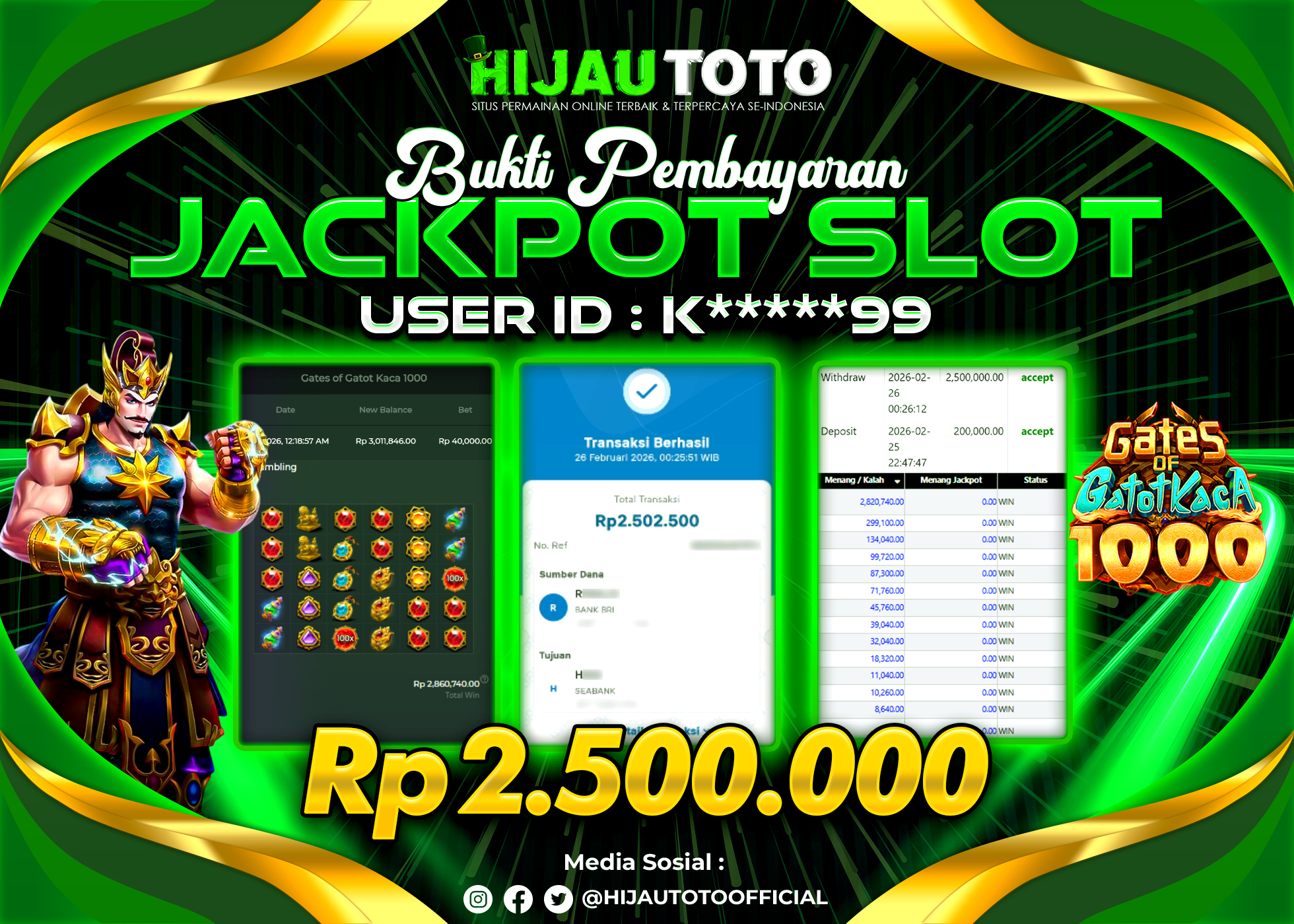 Selamat datang di HIJAUTOTO, tempatnya seru-seruan dan cuan besar! Mulai main cukup dengan modal Rp5.000 aja, taruhan super murah dari Rp100 perak! Mau main slot yang penuh warna? Atau togel dari 20 pasaran paling hits? Atau mungkin tembak ikan yang bikin deg-degan? Tenang, ada juga taruhan bola, sabung ayam, dan live casino yang bikin suasana makin hidup! Daftar sekarang dan dapetin bonus new member 100% langsung, biar modalmu makin tebal. Deposit gampang banget, bisa pakai QRIS, dan kalau butuh bantuan, customer service kita siap 24 jam nonstop. Jadi, tunggu apa lagi? Yuk, gabung dan bawa pulang kemenangannya cuma di HIJAUTOTO!