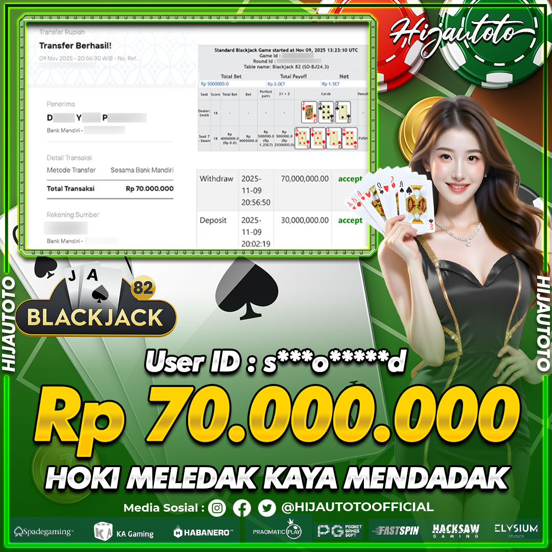 Selamat datang di HIJAUTOTO, tempatnya seru-seruan dan cuan besar! Mulai main cukup dengan modal Rp5.000 aja, taruhan super murah dari Rp100 perak! Mau main slot yang penuh warna? Atau togel dari 20 pasaran paling hits? Atau mungkin tembak ikan yang bikin deg-degan? Tenang, ada juga taruhan bola, sabung ayam, dan live casino yang bikin suasana makin hidup! Daftar sekarang dan dapetin bonus new member 100% langsung, biar modalmu makin tebal. Deposit gampang banget, bisa pakai QRIS, dan kalau butuh bantuan, customer service kita siap 24 jam nonstop. Jadi, tunggu apa lagi? Yuk, gabung dan bawa pulang kemenangannya cuma di HIJAUTOTO!