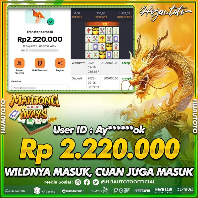 Selamat Kepada Member HIJAUTOTO AY******OK Telah Jackpot Di SLOT MAHJONG WAYS