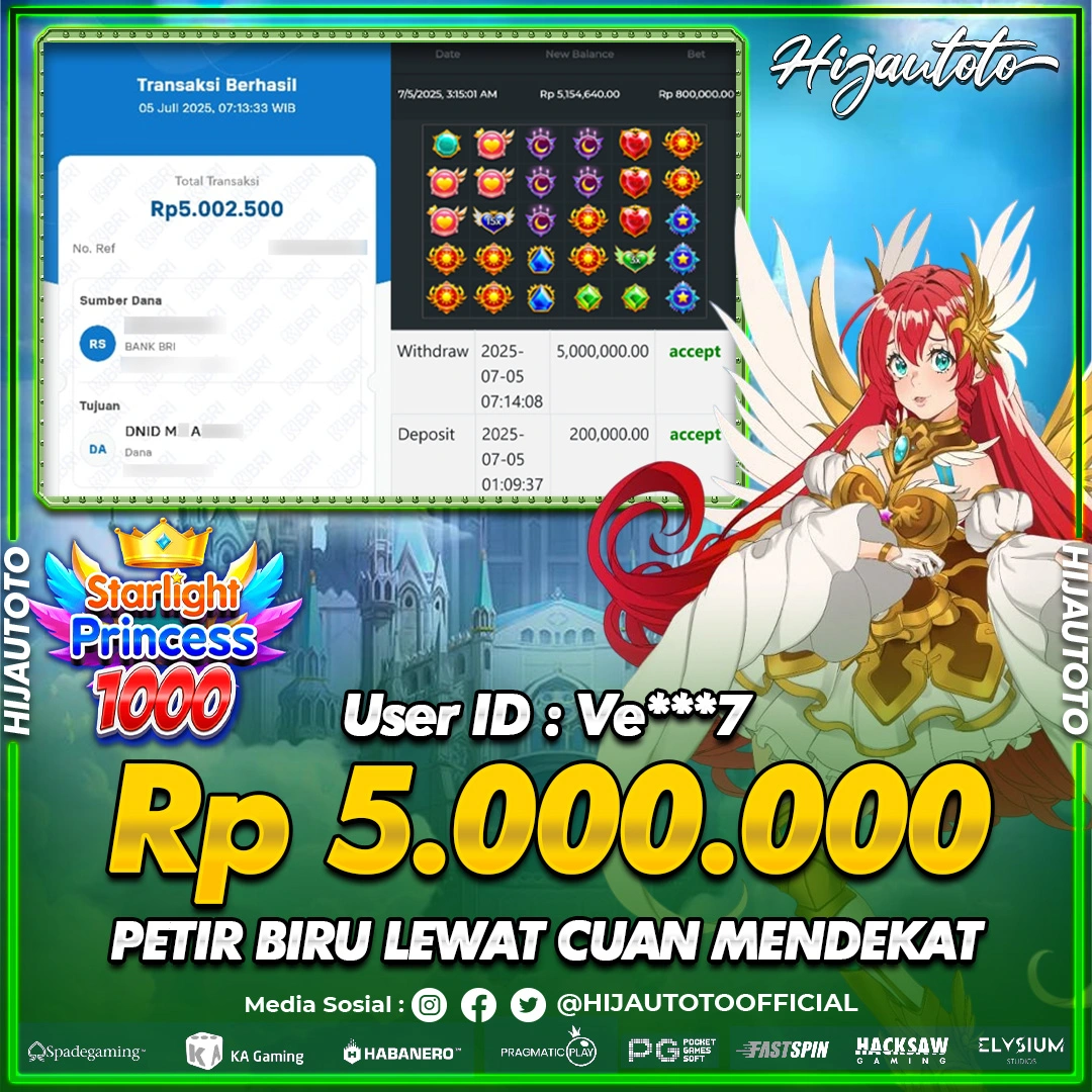 Karena berhasil memenangkan Rp.Rp.9.269.000 dari permainan seru SLOT STARLIGHT PRINCESS 1000 di HIJAUTOTO! πŸ’°πŸ’Έ