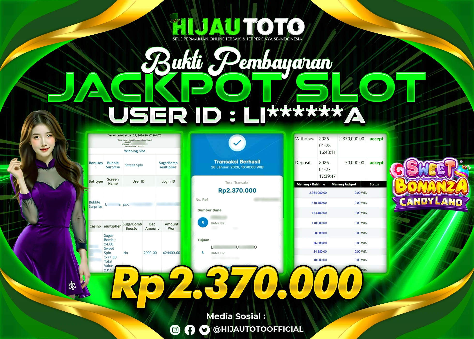 Selamat datang di HIJAUTOTO, tempatnya seru-seruan dan cuan besar! Mulai main cukup dengan modal Rp5.000 aja, taruhan super murah dari Rp100 perak! Mau main slot yang penuh warna? Atau togel dari 20 pasaran paling hits? Atau mungkin tembak ikan yang bikin deg-degan? Tenang, ada juga taruhan bola, sabung ayam, dan live casino yang bikin suasana makin hidup! Daftar sekarang dan dapetin bonus new member 100% langsung, biar modalmu makin tebal. Deposit gampang banget, bisa pakai QRIS, dan kalau butuh bantuan, customer service kita siap 24 jam nonstop. Jadi, tunggu apa lagi? Yuk, gabung dan bawa pulang kemenangannya cuma di HIJAUTOTO!
