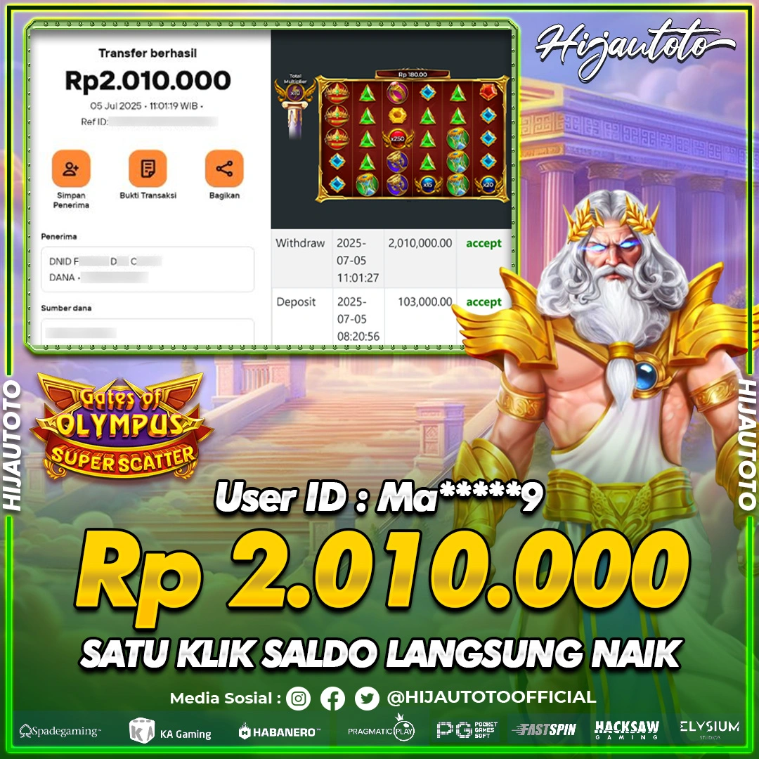 Selamat Kepada Member HIJAUTOTO MA*****9 Telah Jackpot Di SLOT GATES OF OLYMPUS SUPER SCATTER