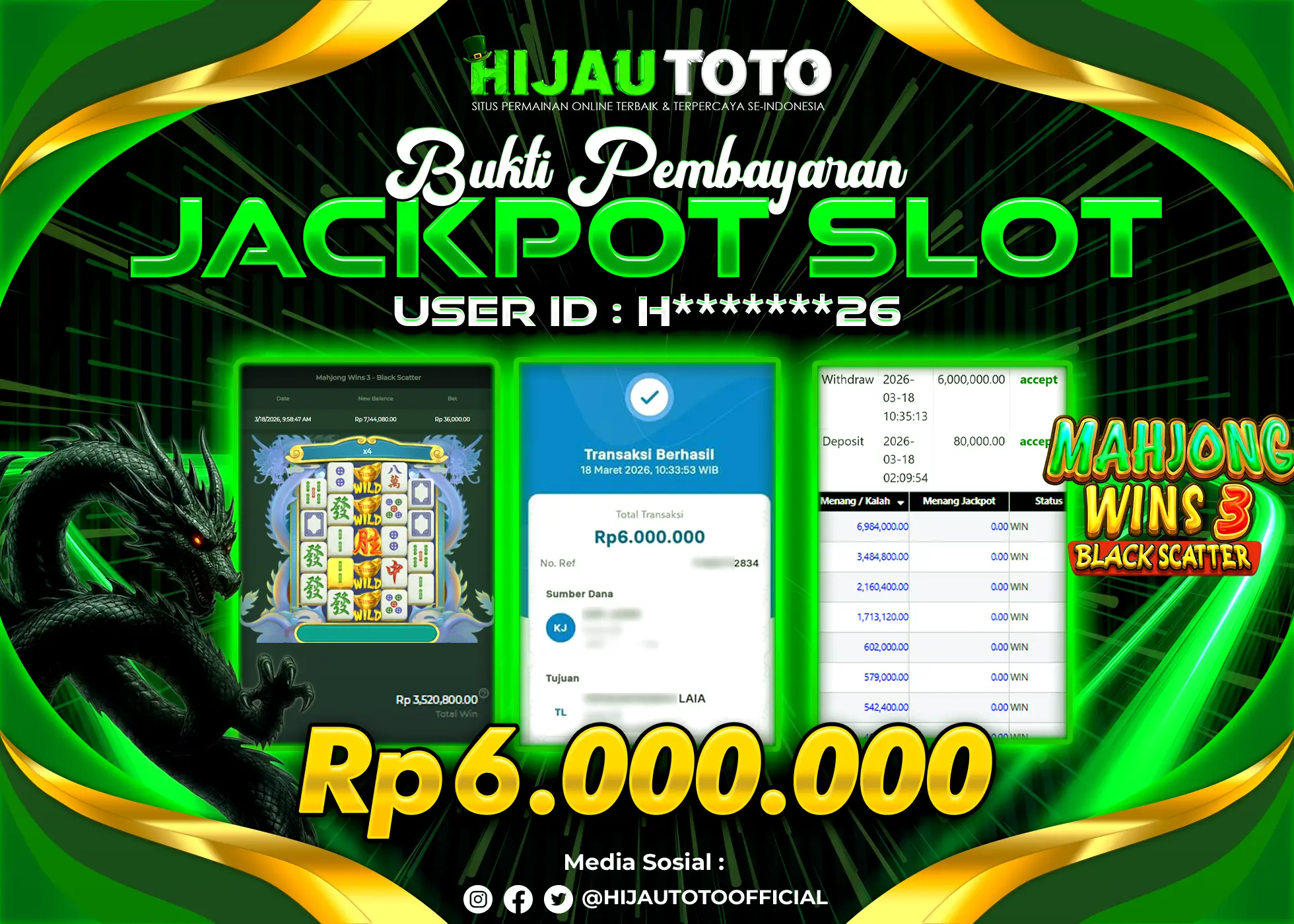 Selamat datang di HIJAUTOTO, tempatnya seru-seruan dan cuan besar! Mulai main cukup dengan modal Rp5.000 aja, taruhan super murah dari Rp100 perak! Mau main slot yang penuh warna? Atau togel dari 20 pasaran paling hits? Atau mungkin tembak ikan yang bikin deg-degan? Tenang, ada juga taruhan bola, sabung ayam, dan live casino yang bikin suasana makin hidup! Daftar sekarang dan dapetin bonus new member 100% langsung, biar modalmu makin tebal. Deposit gampang banget, bisa pakai QRIS, dan kalau butuh bantuan, customer service kita siap 24 jam nonstop. Jadi, tunggu apa lagi? Yuk, gabung dan bawa pulang kemenangannya cuma di HIJAUTOTO!