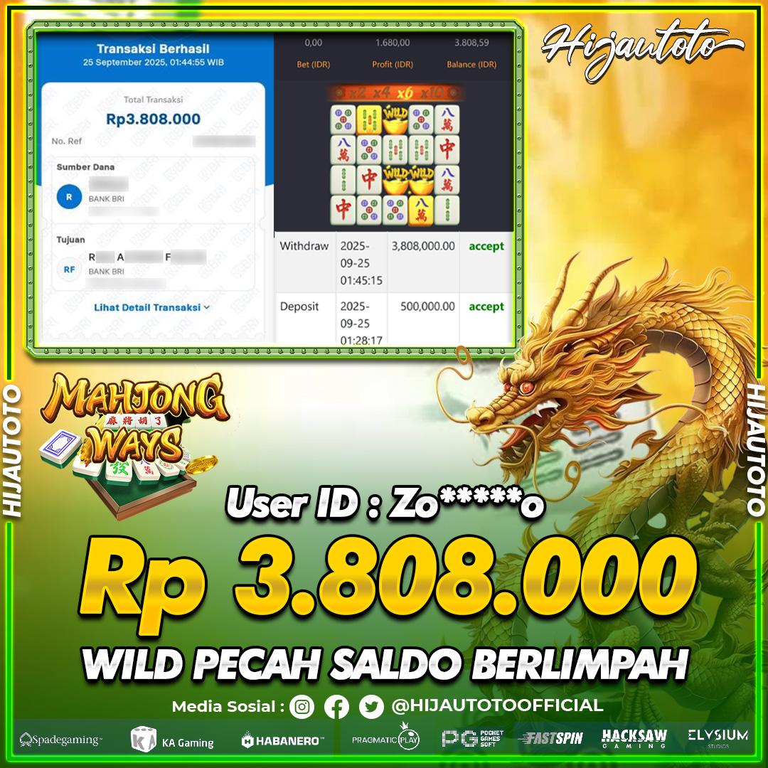 Selamat Kepada Member HIJAUTOTO ZO*****O Telah Jackpot Di SLOT MAHJONG WAYS