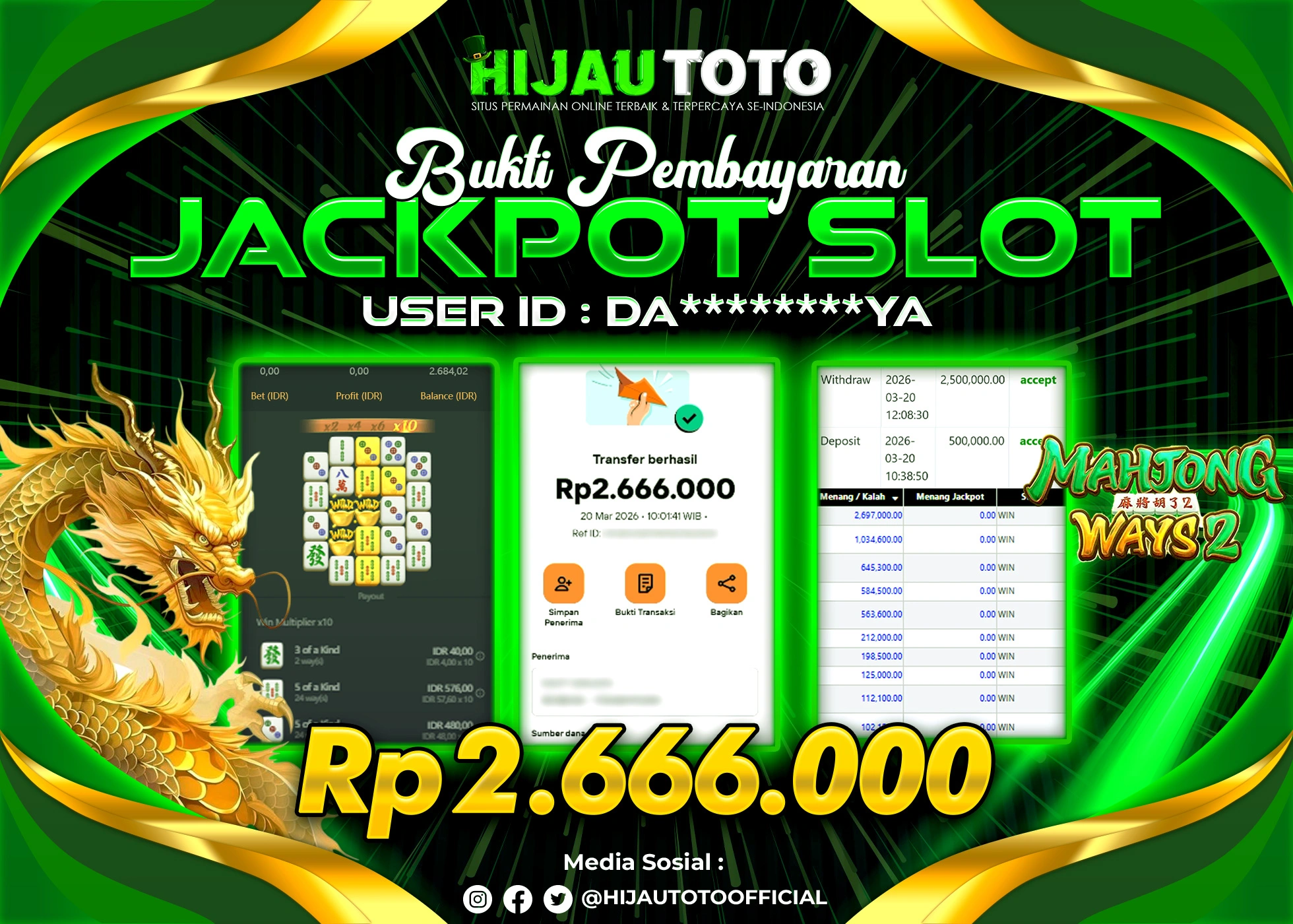 Bergabung dengan HIJAUTOTO sangat mudah dan cepat. Cukup lakukan pendaftaran dengan data lengkap, lakukan deposit minimal Rp5.000 melalui berbagai metode termasuk QRIS, dan mulai bertaruh dengan minimal taruhan Rp100. Dapatkan juga bonus new member 100% untuk modal bermain lebih besar.