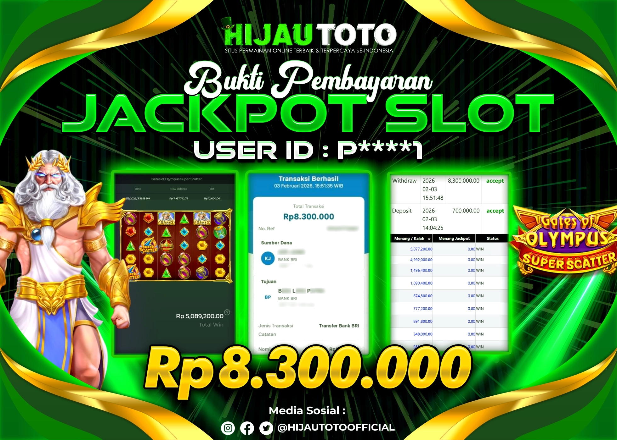 Cuma di HIJAUTOTO, tempat paling AMAN, CEPAT, & TERPERCAYA buat pecinta game SLOT GATES OF OLYMPUS SUPER SCATTER!