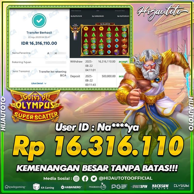 Karena berhasil memenangkan Rp.Rp.4.510.000 dari permainan seru SLOT GATES OF OLYMPUS 1000 di HIJAUTOTO! πŸ’°πŸ’Έ