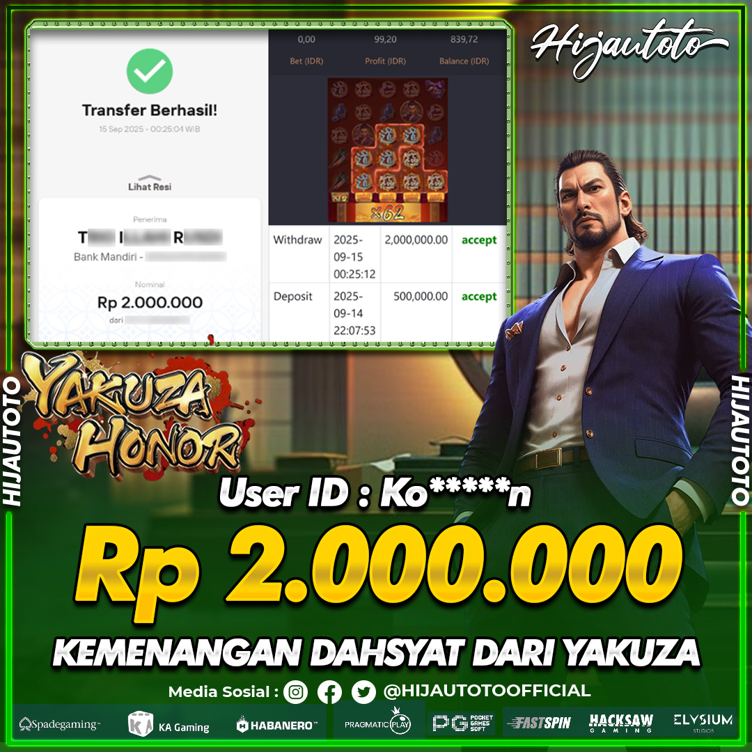 Selamat datang di HIJAUTOTO, tempatnya seru-seruan dan cuan besar! Mulai main cukup dengan modal Rp5.000 aja, taruhan super murah dari Rp100 perak! Mau main slot yang penuh warna? Atau togel dari 20 pasaran paling hits? Atau mungkin tembak ikan yang bikin deg-degan? Tenang, ada juga taruhan bola, sabung ayam, dan live casino yang bikin suasana makin hidup! Daftar sekarang dan dapetin bonus new member 100% langsung, biar modalmu makin tebal. Deposit gampang banget, bisa pakai QRIS, dan kalau butuh bantuan, customer service kita siap 24 jam nonstop. Jadi, tunggu apa lagi? Yuk, gabung dan bawa pulang kemenangannya cuma di HIJAUTOTO!